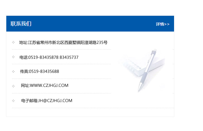 傳真:0519-83435688    郵編:213135    網址:WWW.czjhgj_com.guohuichina.com    電子郵箱:JH@czjhgj_com.guohuichina.com